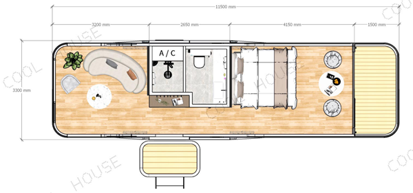 長:11.5M 寬3.3M 高3.2M 建筑面積:38㎡