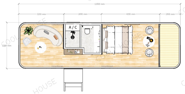 長:11.5M寬3.3M高3.2M建筑面積:38㎡